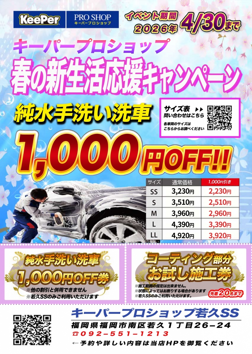 「お車のキレイは私ども、若久SSにお任せ下さい!」