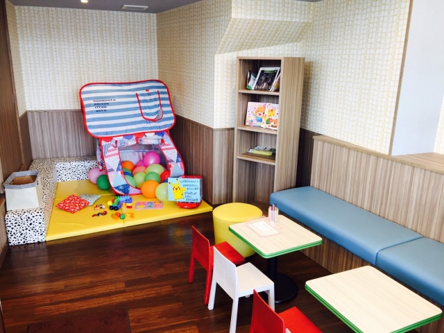 子供連れでも安心の広いトイレには「ベビーシート」を設置。 ドレッサー付き手洗い器も備え、化粧スペースもゆったりです。 「キッズスペース」の清潔感にもこだわります。 |