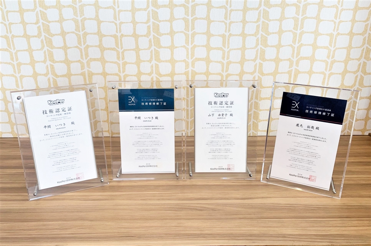 カーコーティングは、 技術のある資格者に任せることで安心に繋がります。 当店には、3名のコーティング1級資格者が在籍。 いつでも技術資格者が対応致します。 ご安心して、お任せください! |
