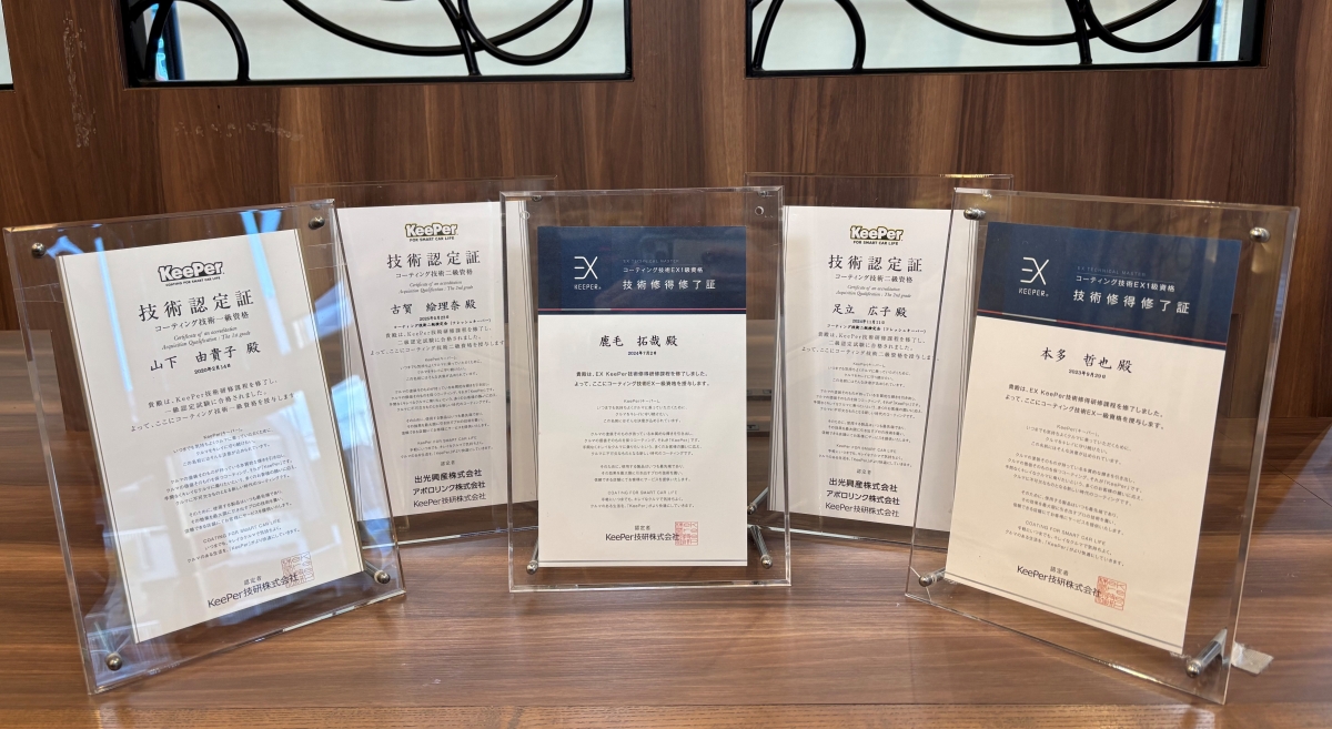 カーコーティングは、 技術のある資格者に任せることで安心に繋がります。 当店には、3名のコーティング1級資格者と2名の2級資格者が在籍。 いつでも技術資格者が対応致します。 ご安心して、お任せください! 施工したお車で掲載許可を頂いたものをフォトログにて掲載しておりますので、 ぜひそちらもご確認ください★ |