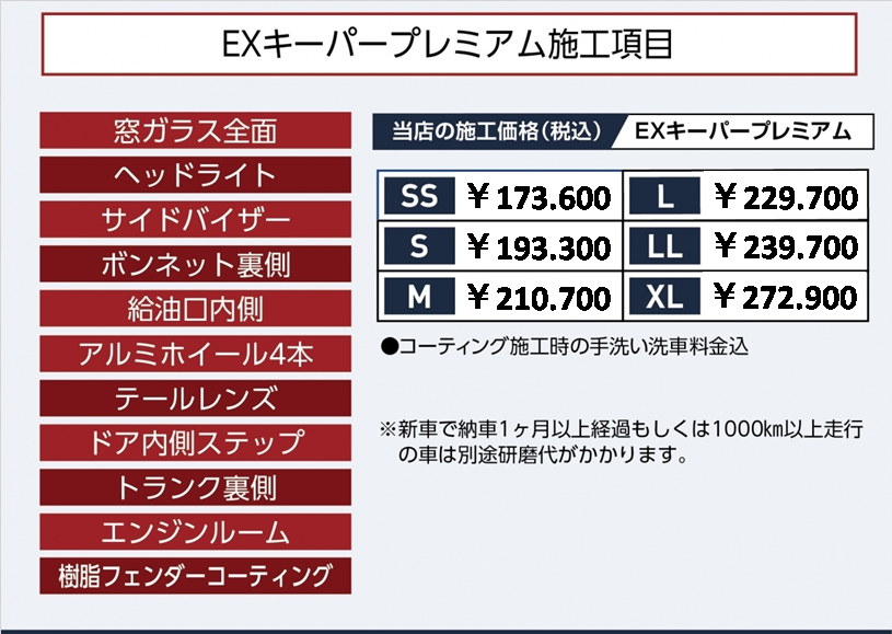 コーティング施工や作業時間が2時間を超える場合、無料で代車をお貸ししております。 数に限りがございますので、早目のご予約をお願いします。