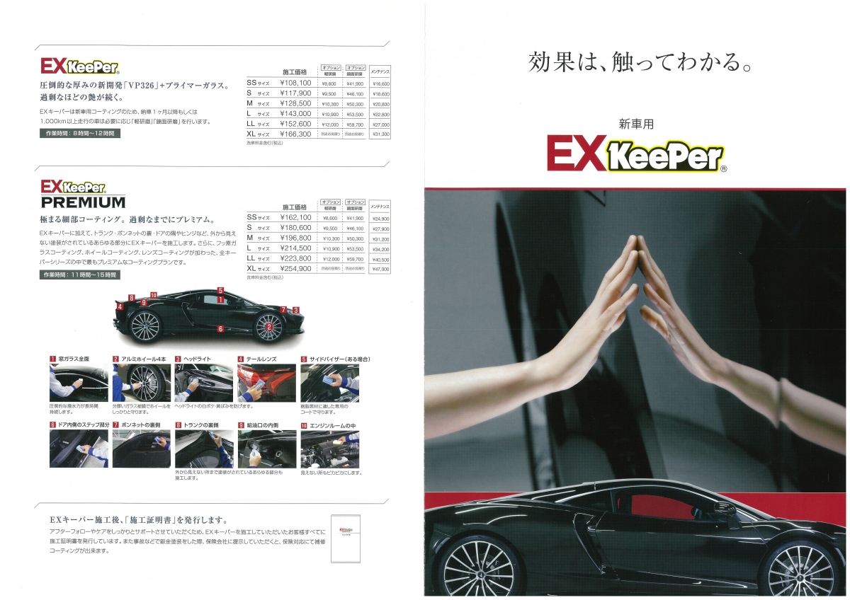 EXキーパーの圧倒的な艶を生む「VP326」の下に定着を良くするプライマーガラスを施工することで目に見えて、新車を超えた艶と美しさを実感できます。