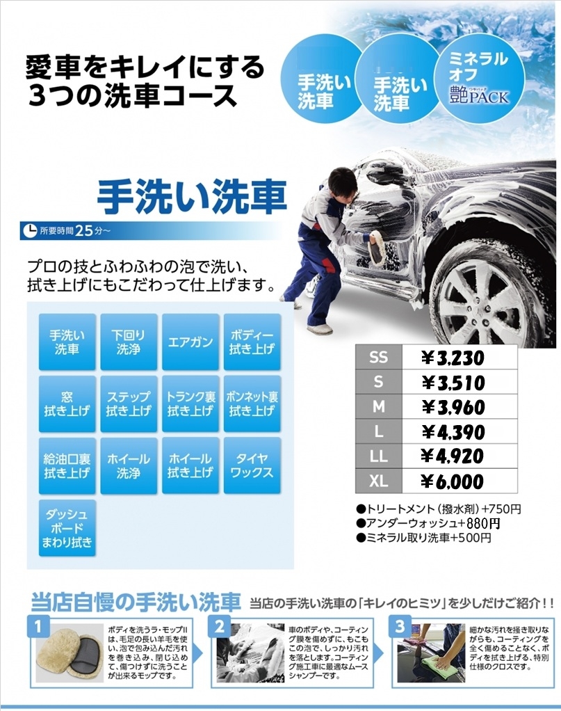 車の状態、お客様の好み、お客様のカーライフスタイルにより、その方法、お手入れは様々です。
