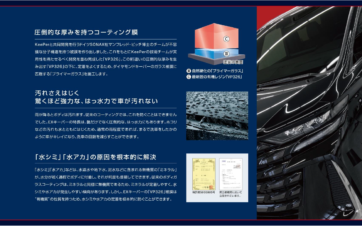 「密閉型ブース」が完成し、2022年5月1日よりコーティング作業をすべて室内で行っております。 室内での湿度管理、純水を使っての作業を徹底し品質を極限まで高めております。 施工時間、硬化時間の掛かる「Wダイヤモンドキーパー」「エコプラスダイヤモンドキーパー」「EXキーパー」に関しては確実に品質に差が生まれます。 特に「EXキーパー」に関しましては密閉型ブースでの施工が原則となっており、当店の設備で行うことで商品の性能を100%発揮できます