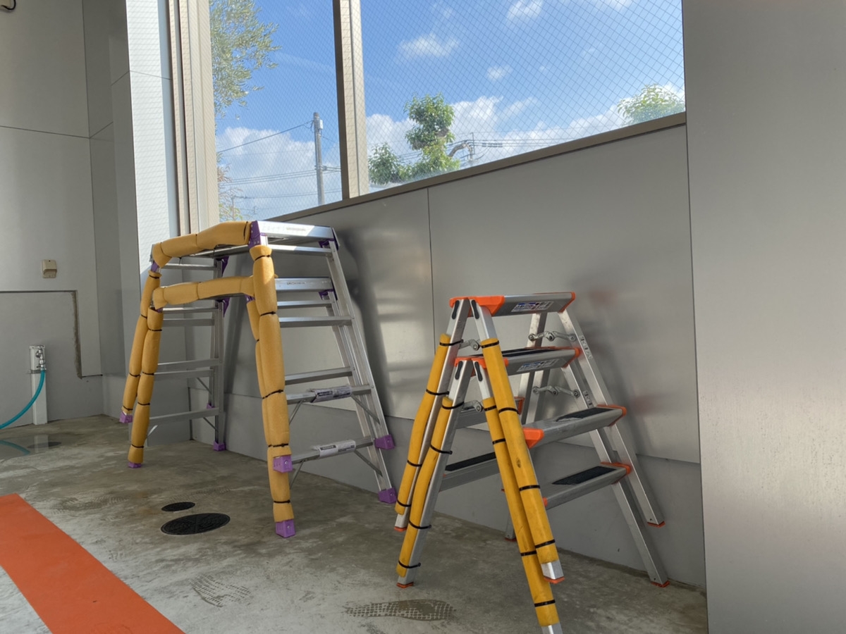施工時の脚立の取り扱いには十分注意し、万が一のことを考慮しスポンジをつけております。ご安心してお任せください。