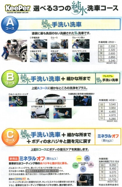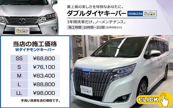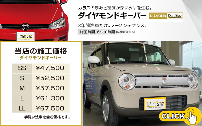 キーパー施工車 特別価格 ※手洗い洗車時にコーテイング施工証明書を提示下さい