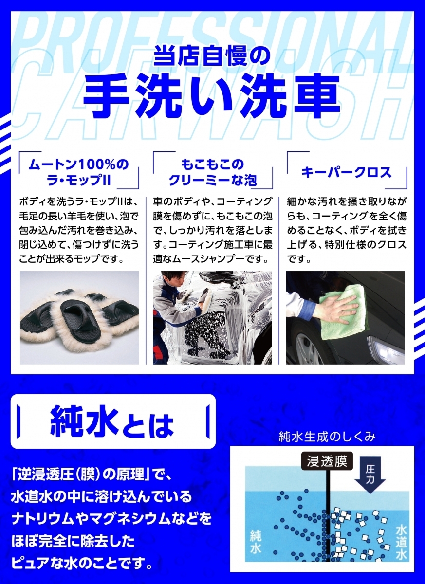 当店の手洗い洗車・コーティングは純水を使用してます。
