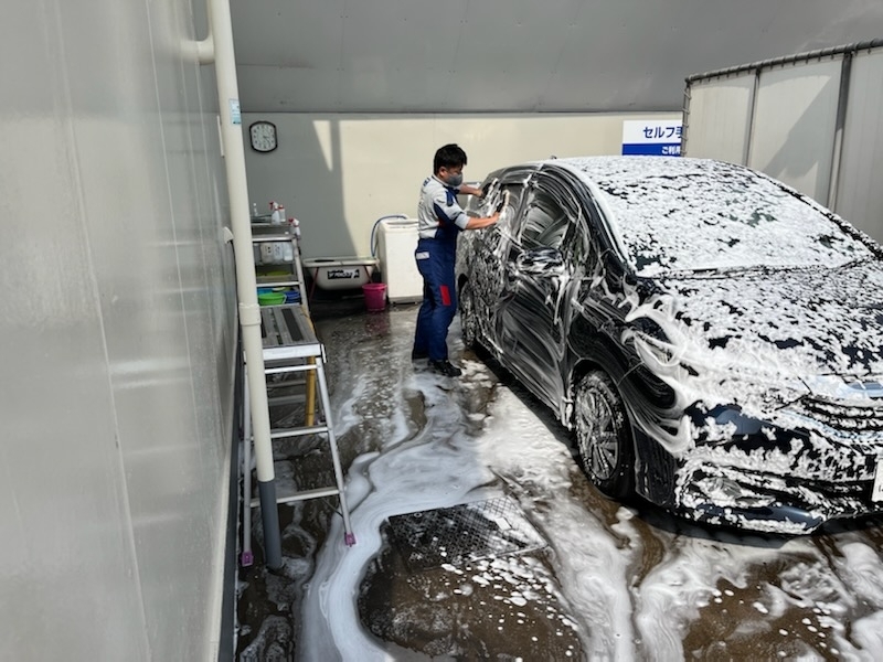 手洗い洗車のスペースが広く風の影響を受けにくくなっておりますので