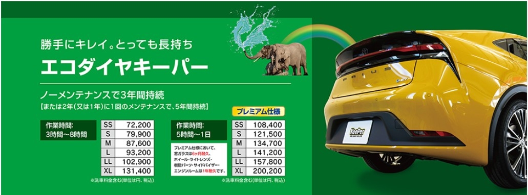 ECOプラスレジン被膜と高密度ガラス被膜の2層構造のボディガラスコーティング。
