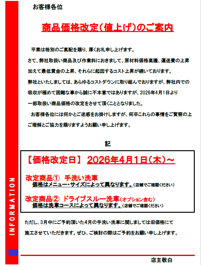 ~店舗からのお知らせ~