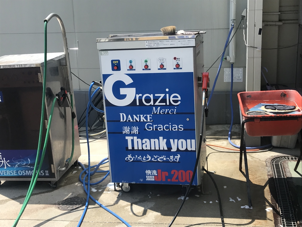 手洗い洗車のスペースが広く直射日光からお車をお守りする屋根付き洗車ブース。