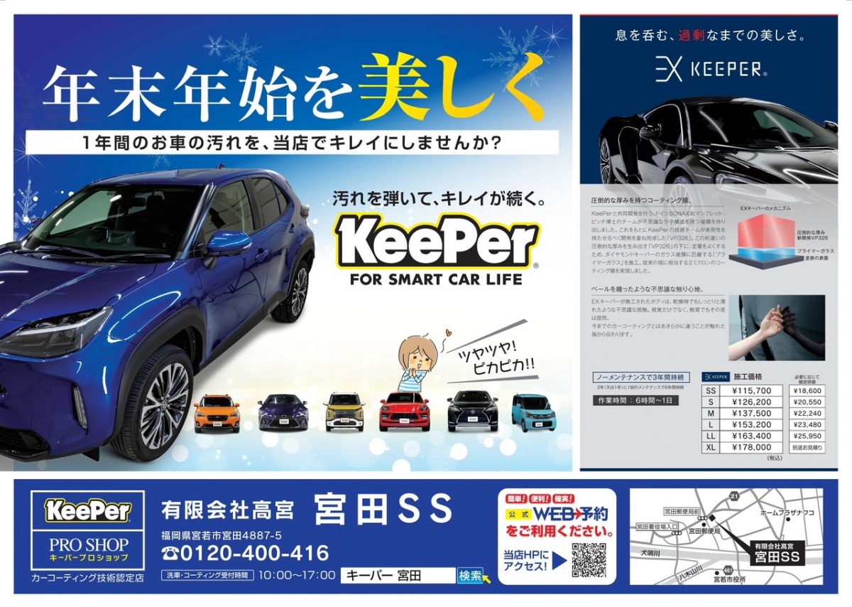 福岡県宮若市、県道21号(福岡~直方)線沿い宮田郵便局そばにある「KeePerプロショップ」㈲高宮/宮田SSです。セルフではなくスタッフが給油するタイプのガソリンスタンドです。小さなお店ですが、「いつものお店で、いつものスタッフがお出迎え。」上質なサービスと安心してご来店いただけるお店作りを心がけております。スタッフ一同、お客様のご来店を心よりお待ち致しております!(^^)!