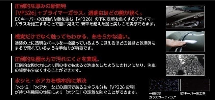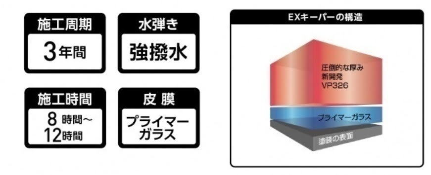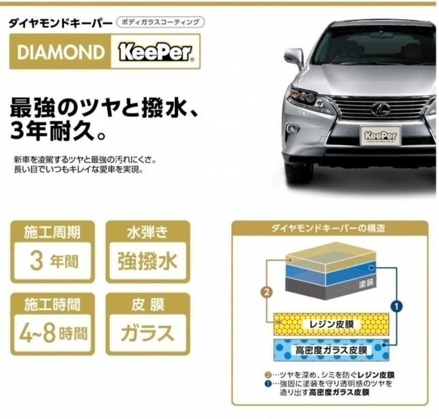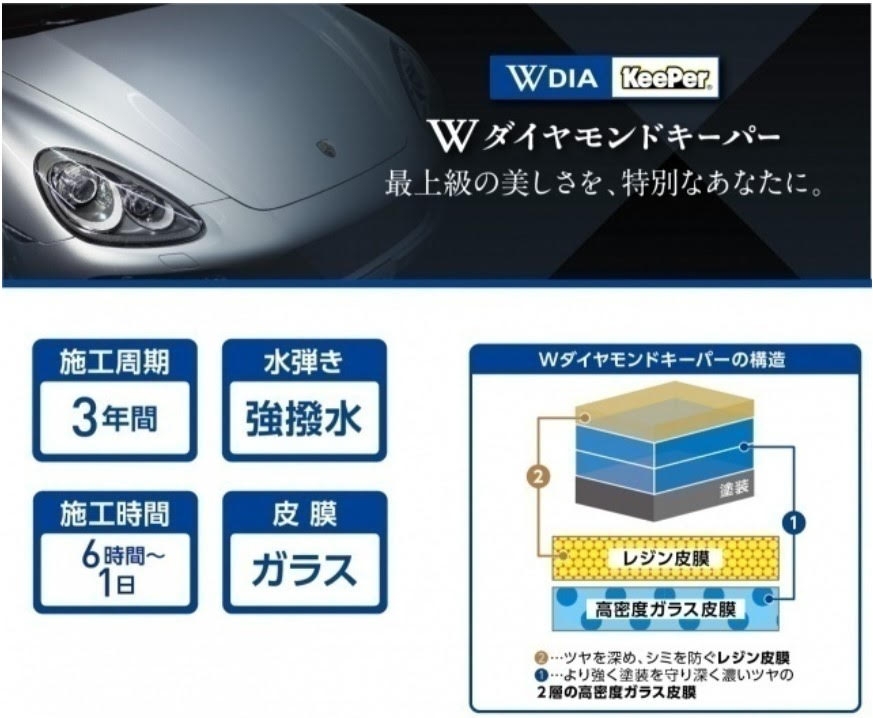 新車時の塗装をWのガラス被膜で長くキレイに保ちます。