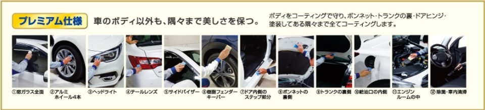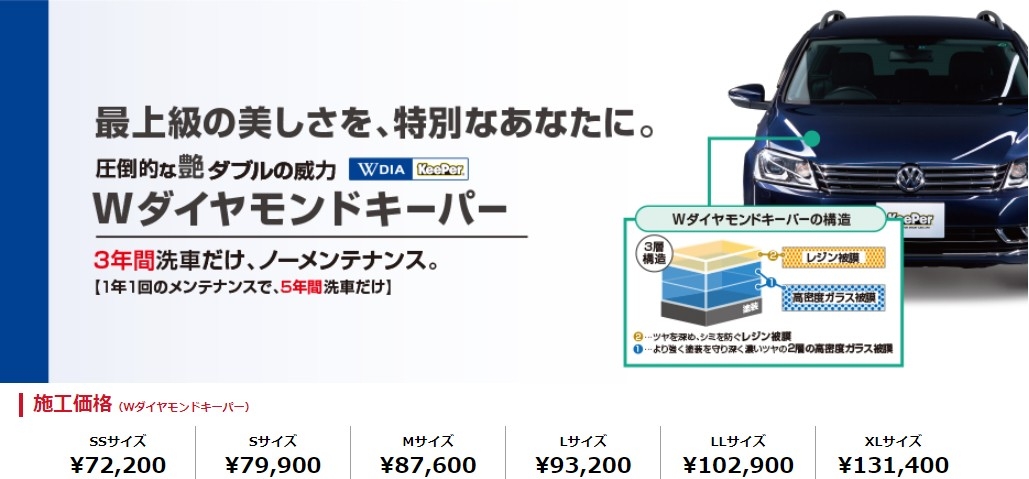 ●ボディを3層構造のダブルダイヤキーパーで守り、ボンネット、トランク裏、ドアヒンジなど塗装してある部分を全てコーティングします。