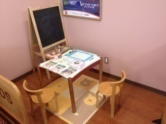 落ち着きのある色合い、まるでカフェのようなテーブルにイス。