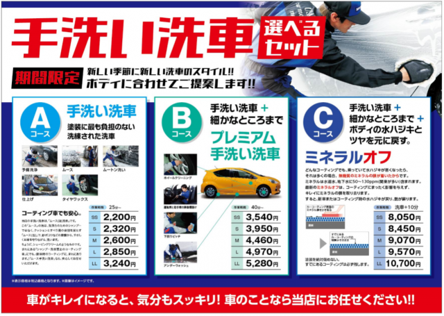 電話などで判断しかねる場合、ご一緒にお車を見ながら最適なコースをご案内させていただきます。