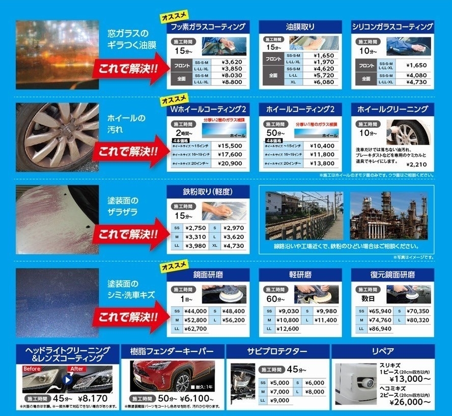 - 洗車・コーティング営業時間