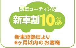 新車のお車(新車登録より6ヶ月以内)であれば割引対象となります!