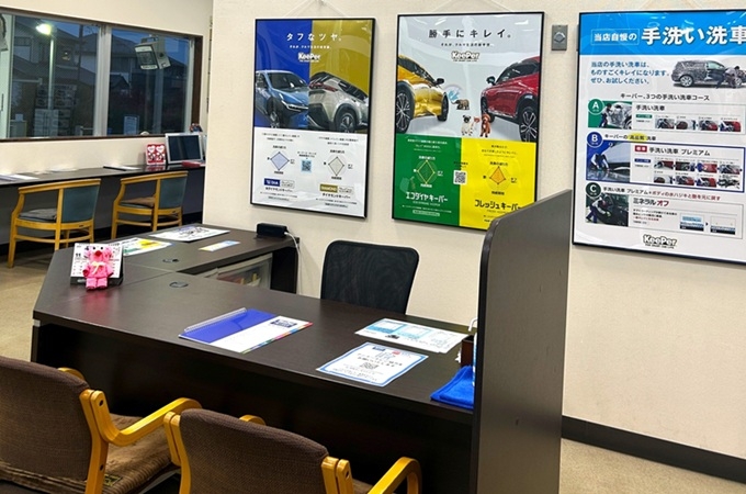 当店の手洗い洗車は全て屋内洗車で、お車の塗装に優しい純水を使用しております。