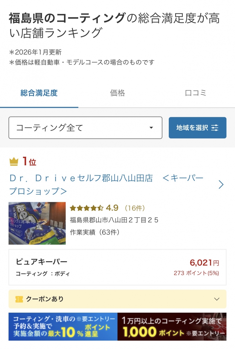- 【キーパープロショップDr.Driveセルフ郡山八山田店】は、