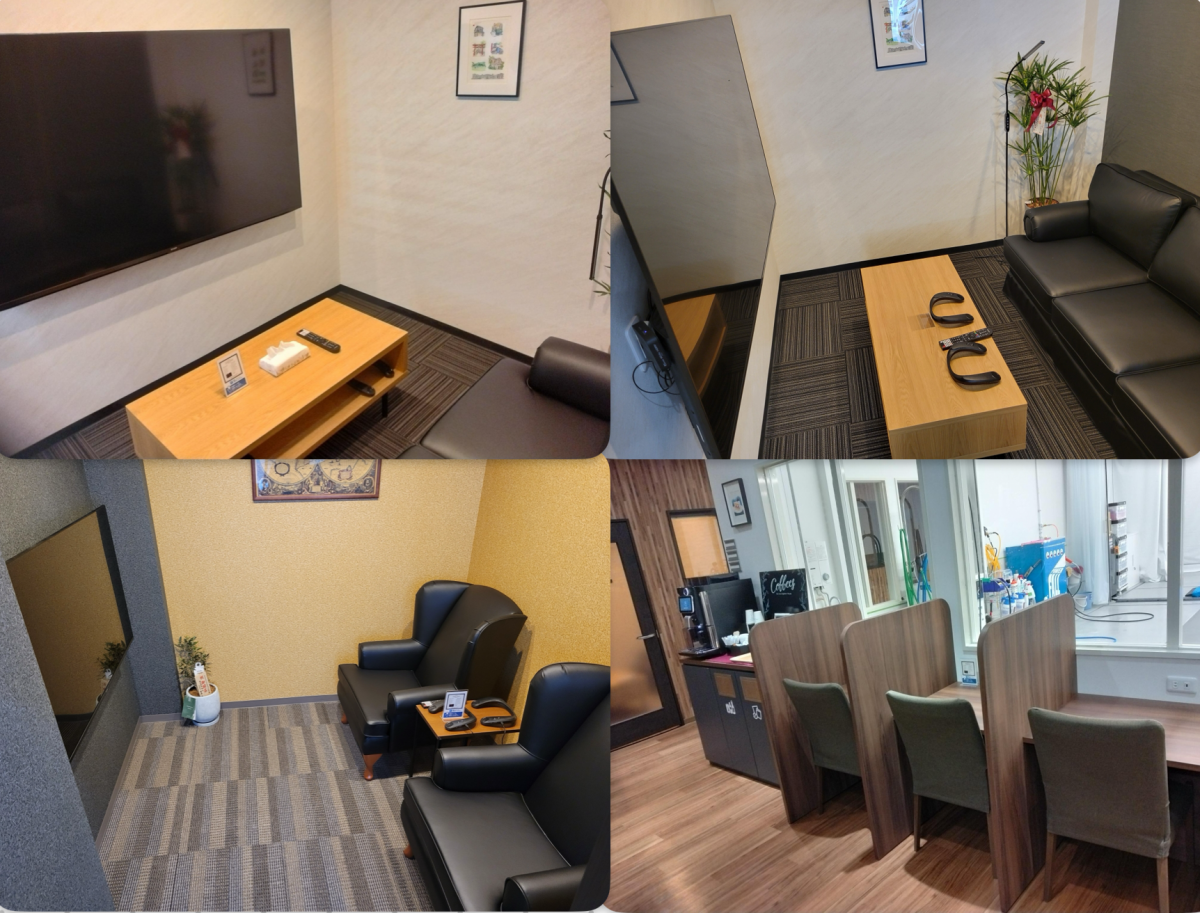 大画面のモニターと大きな ソファーでゆったりと 過ごせるシアタールームが3つございます。 洗車やコーティング待ちの2,3時間も ここならあっという間!? 愛車が綺麗になるまでゆっくり おくつろぎくださいませ。