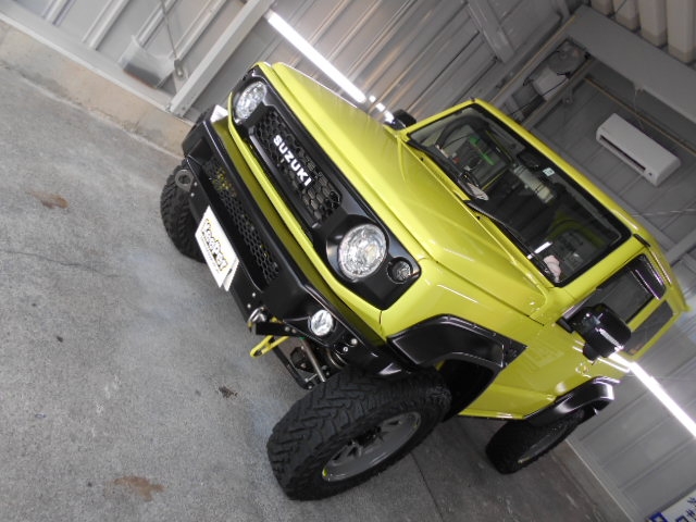 リフトアップした本格的な下回りの塗装も、雨、風、埃を防いだ環境で施工出来ます!