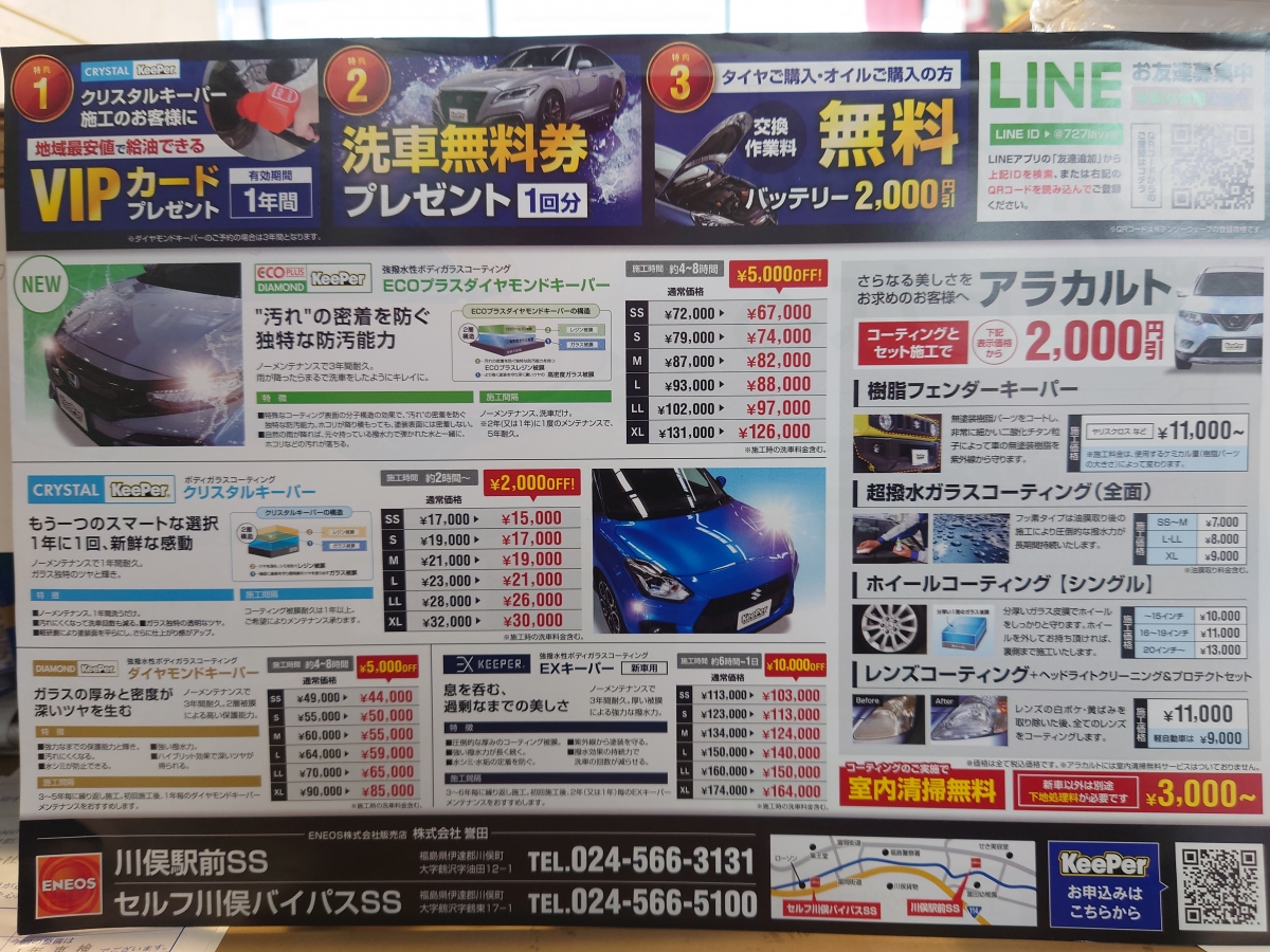 只今コーティング関係の値引きキャンペーンをやっております! この機会に是非!福島NO1の実力を持つコーティングを!
