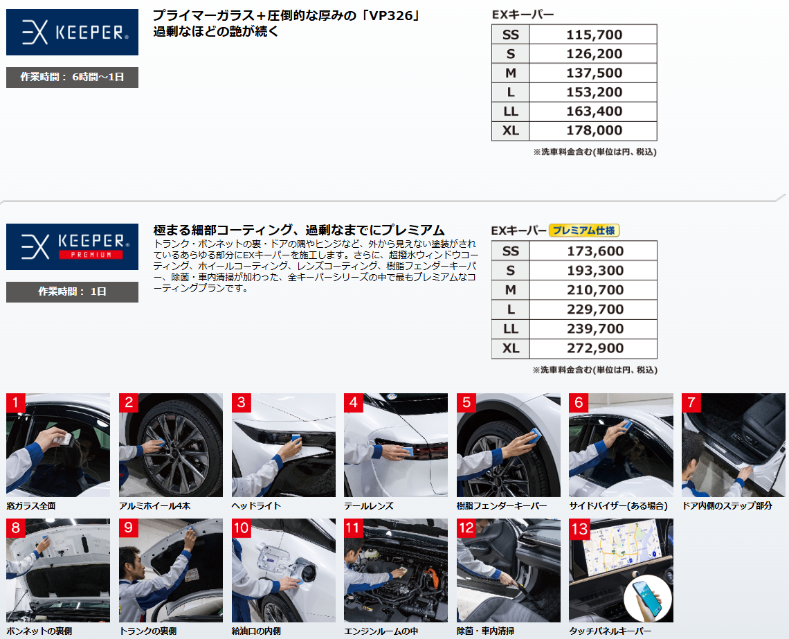 当店の施工価格 SSサイズ¥75,800‐ Sサイズ¥83,800‐ Mサイズ¥91,900‐ Lサイズ¥97,800‐ LLサイズ¥108,000‐ XLサイズ¥137,900- ※(税込)施工時の洗車料金含む 施工時間4~8時間
