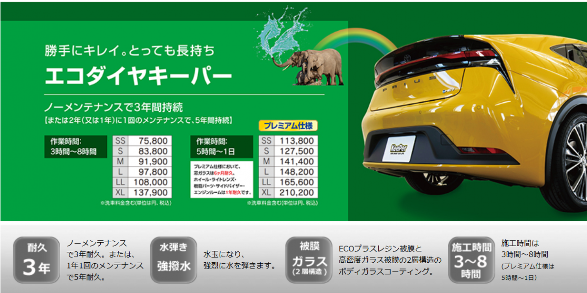 Lサイズ¥72,930‐ LLサイズ¥79,420‐ ※(税込)施工時の洗車料金含む
