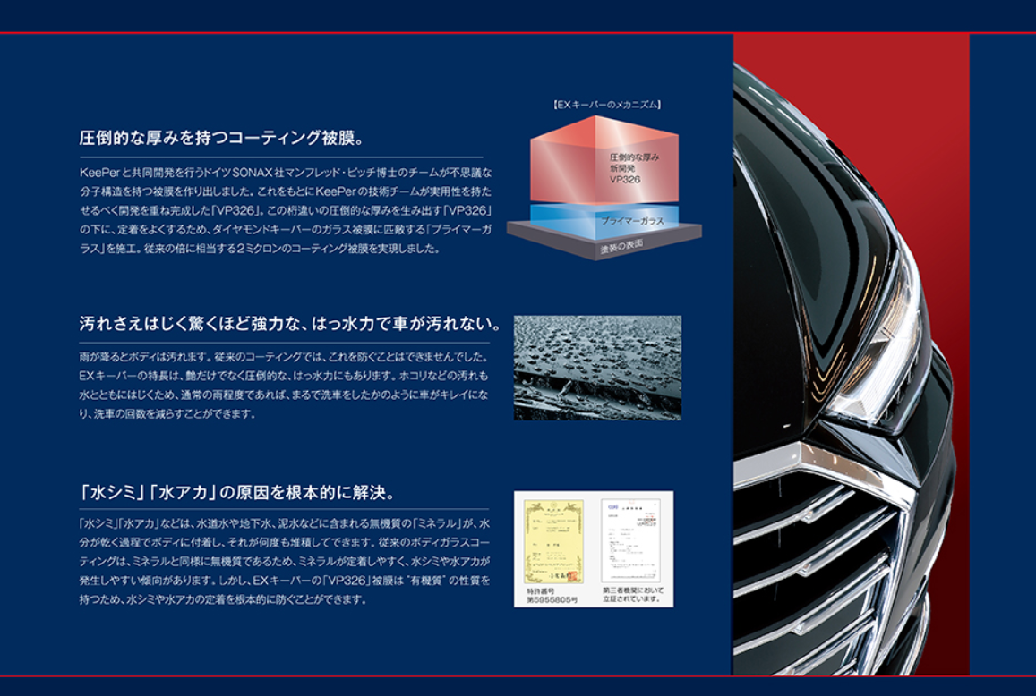 ガラス特有の透明感あるツヤで、他の車と差がつきます!