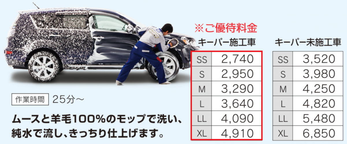 2.手洗い洗車(キーパー施工車)