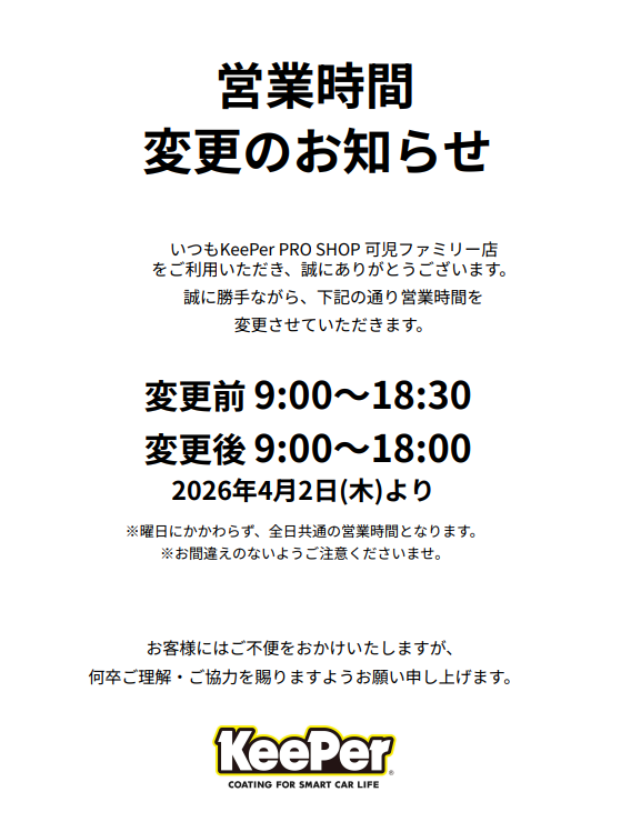- 洗車・コーティング営業時間