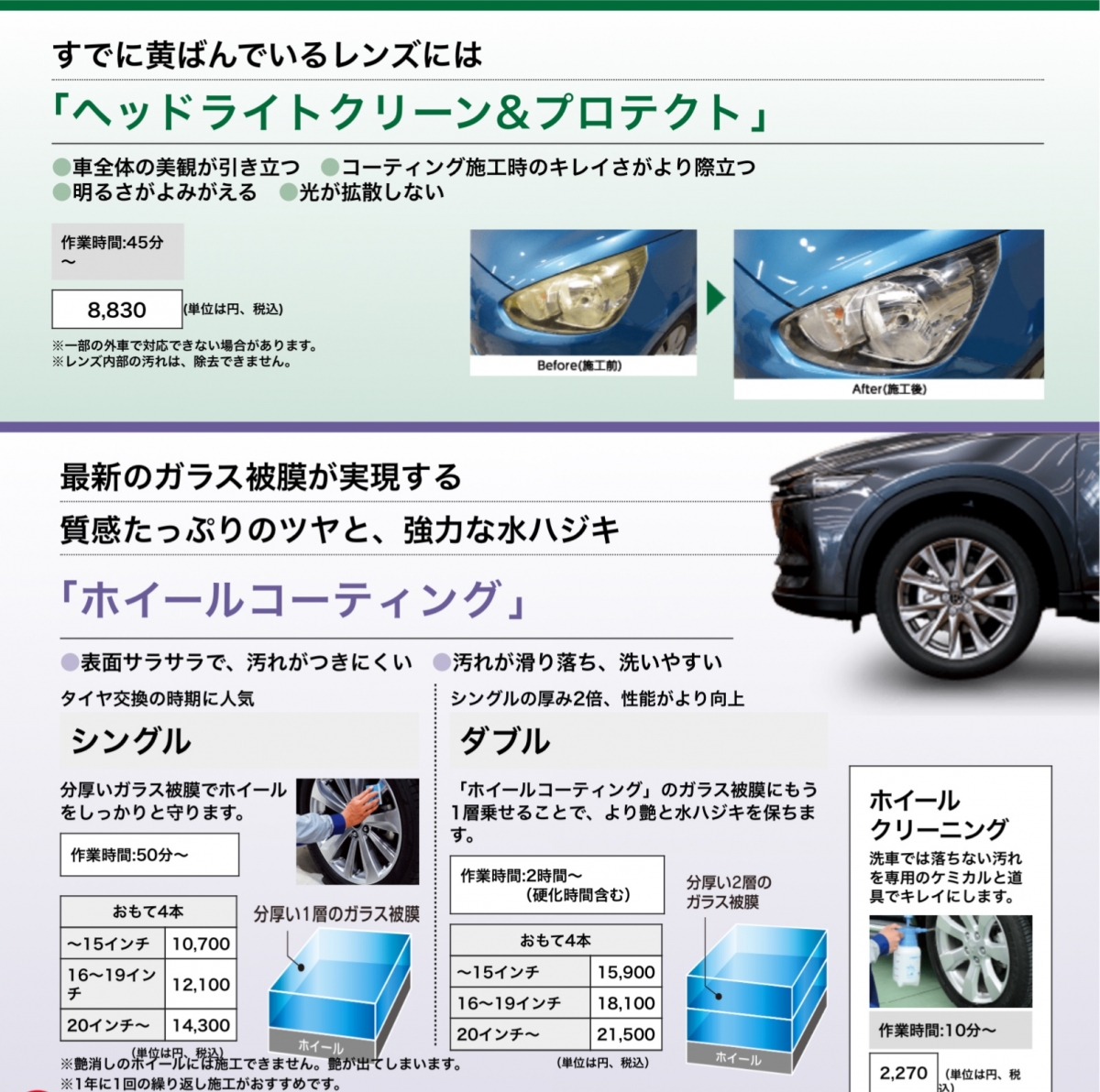 普段、頻繁にお車のケアをできない方 ・新車を購入した方 新車の輝きがうーんと長持ち! ・1年に1回でいいから、経済的◎ ・お車買い替えの査定アップに繋がることも!