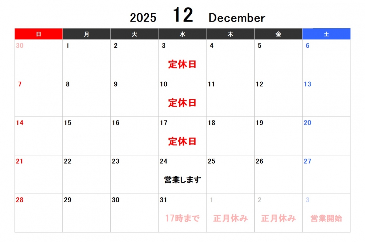 12月の運営カレンダー