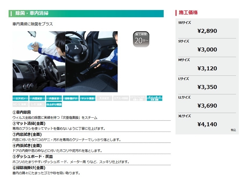 車内清掃メニューのご紹介