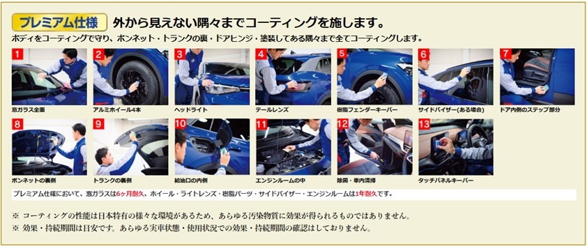 ★各箇所の専用コーティングでお車を守ります