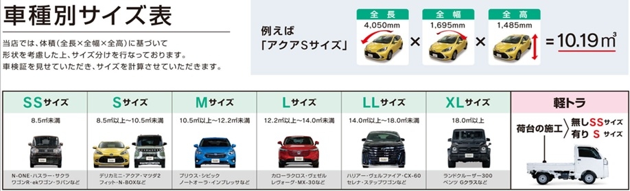 車種サイズ一覧