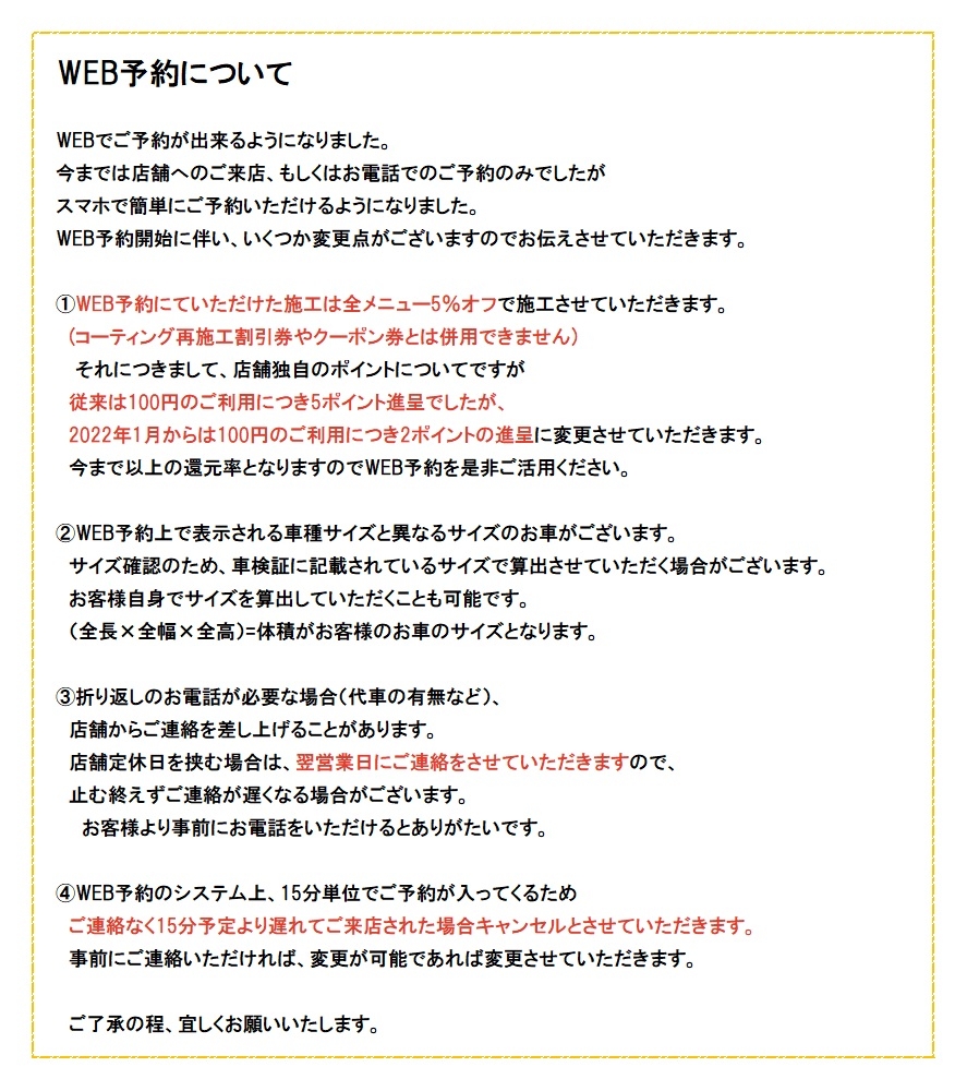 コーティング施工に伴い、お客様のご希望の時間帯が