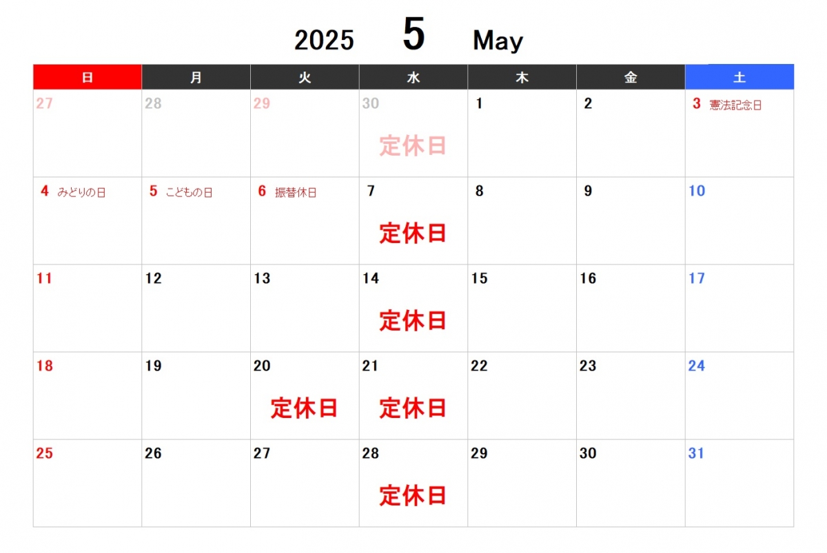 - 毎週水曜日(それ以外はHPにてご確認ください)