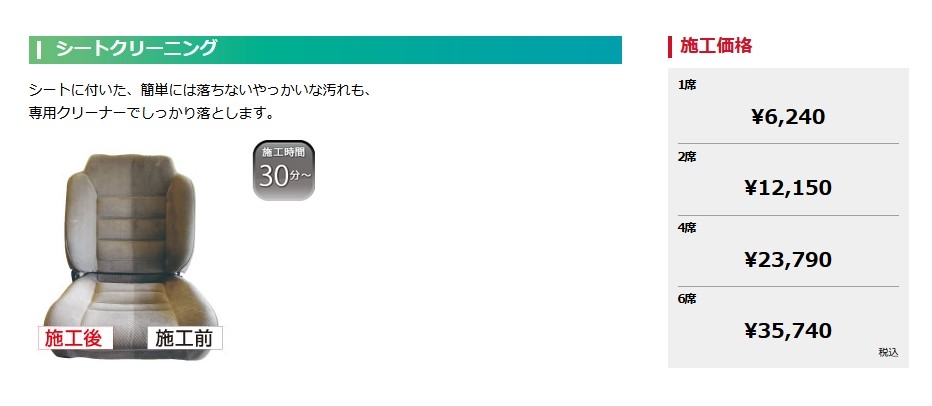 車内清掃メニューのご紹介