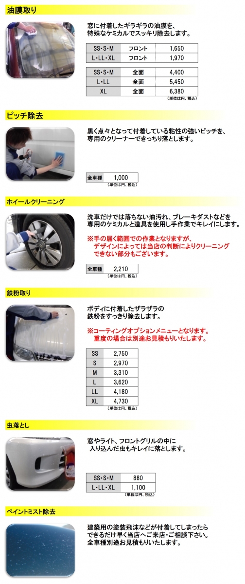 水アカ・鉄粉・窓ガラスのウロコなど、気になる汚れの除去を行い、