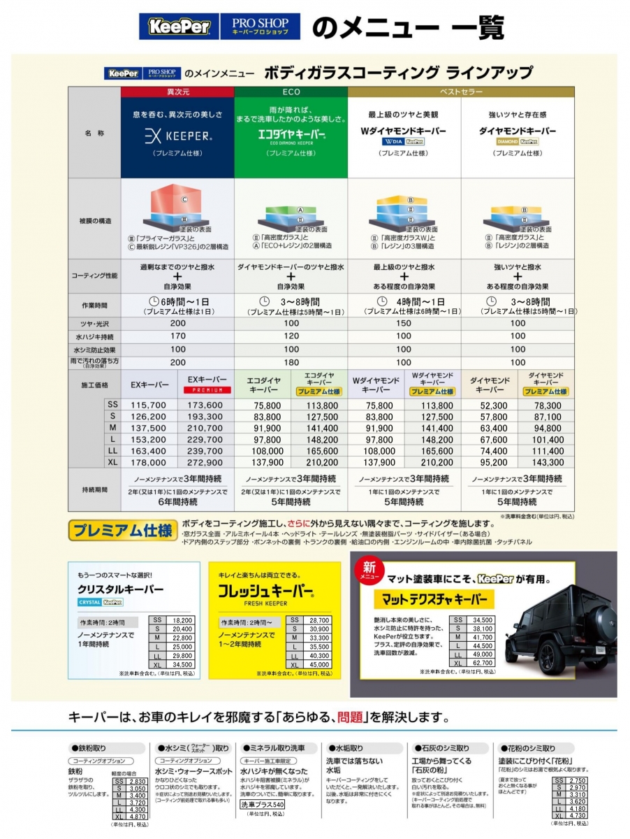 キーパーコーティングや手洗い洗車はもちろん