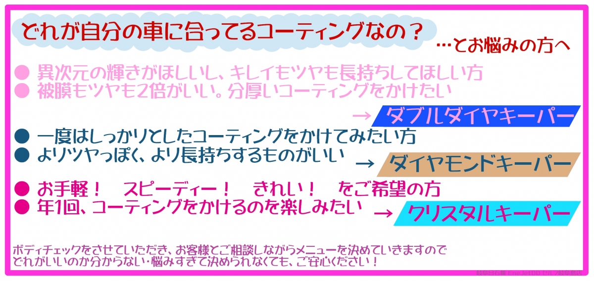 ここからは、当店で施工可能なコーティングのご紹介をいたします。