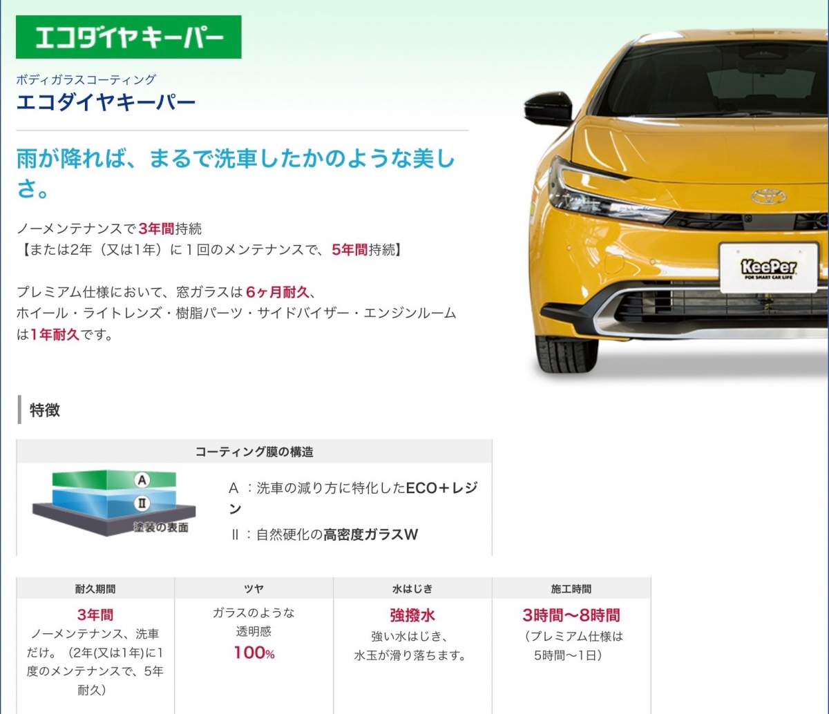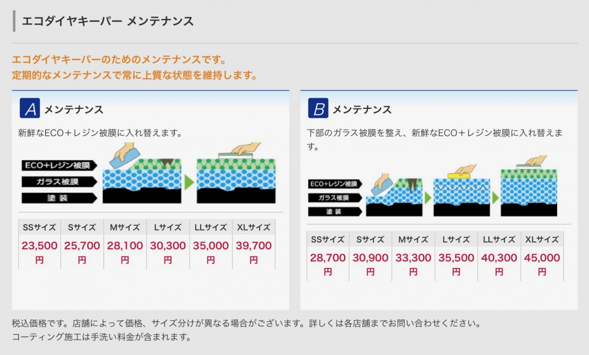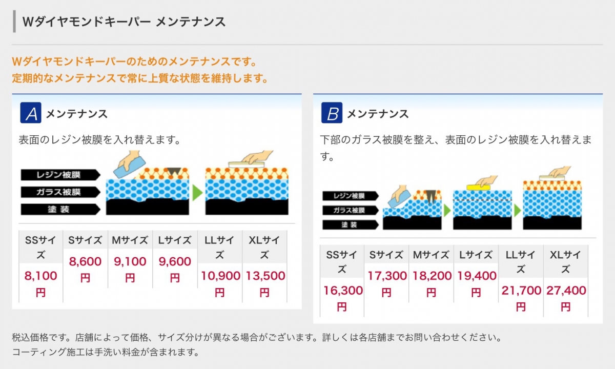 ●メンテナンスをせず、洗車だけで、3年間持続目安のプランと