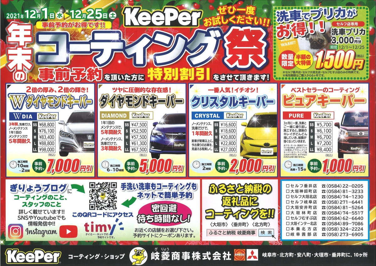 こんにちは!キーパープロショップENEOS安井町店川本です⭐12月が始まりタイヤの脱着や洗車などのご来店がたくさん!!!!!!!!!!!!!!!年末にかけて大忙しになること間違いなし!!早めの年末年始...