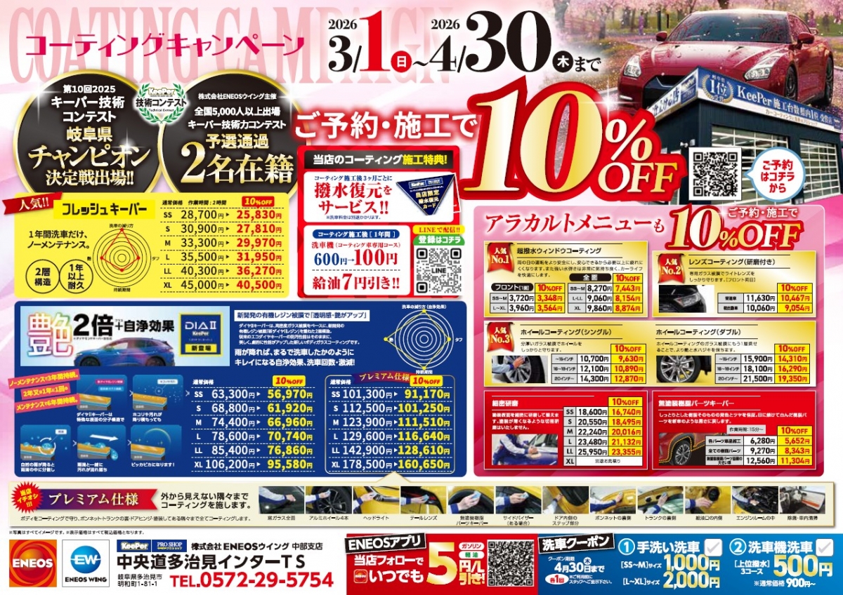 3/1~4/30までコーティング10%offキャンペーン