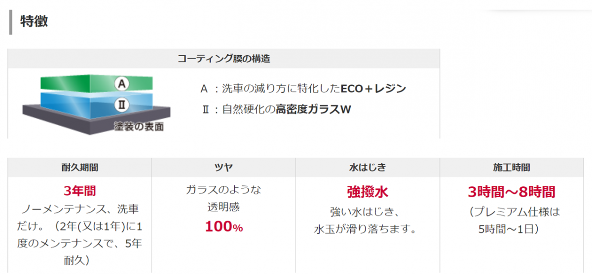 自然硬化の高密度ガラス被膜とレジン被膜の2層でコーティングします。