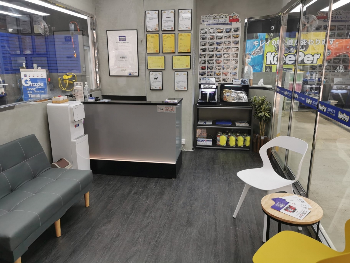 香港KeePer PROSHOP長沙灣店在2021年7月30日起正式全面投入服務。接待處設計於店舖中心,客人可安坐於接待處,從多角度欣賞施工狀況。