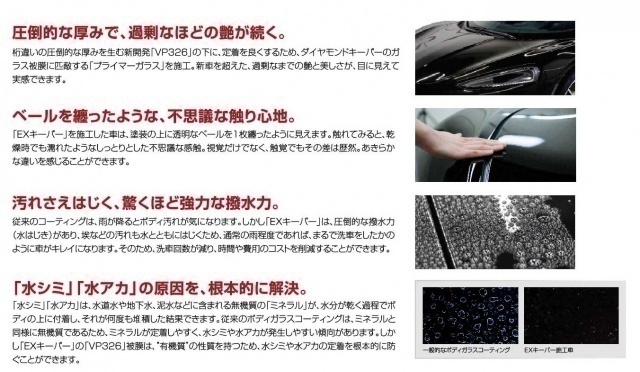 A.キーパーコーティングはワックスと違い、特殊な高分子共重合体を使用しています!コーティングを繰り返す事で被膜を強化して、塗装面がどんどん滑らかになるんですよ!