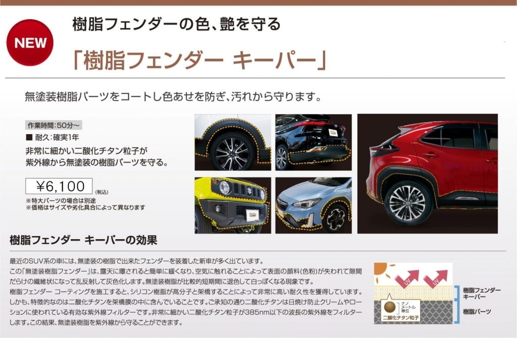 最近のお車はSUVなど樹脂のフェンダーのお車が増えてきていますよね?